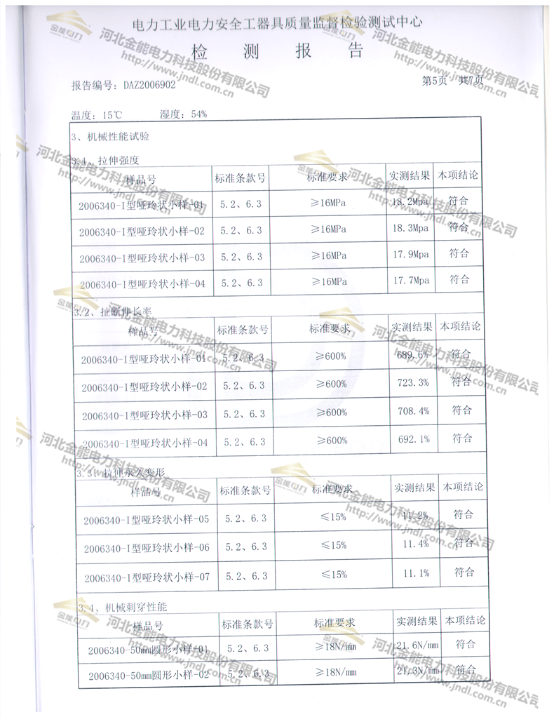 金能電力35kv絕緣手套檢測報(bào)告